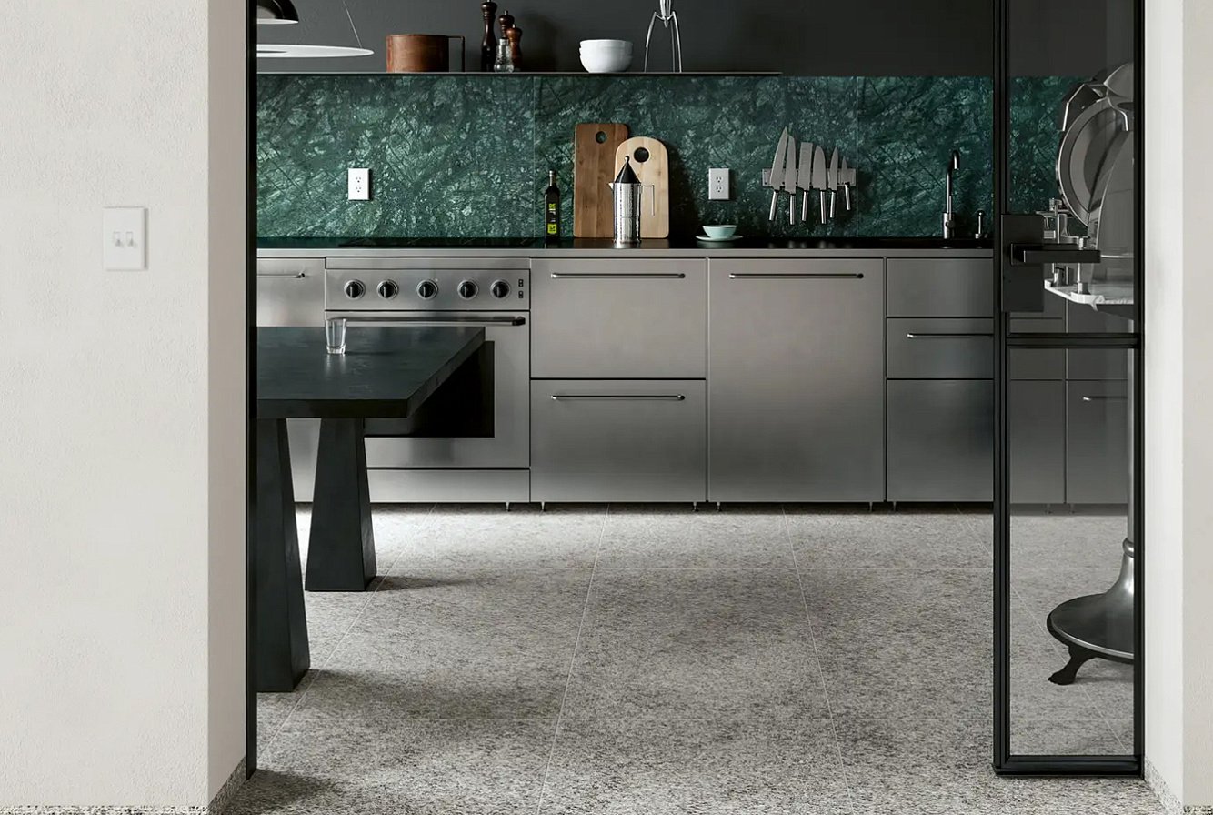 Керамогранит доступен в формате 60x120 см и в двух вариантах отделки: Natural и Rugged. Поверхность Rugged также представлена в формате 5х120 см.