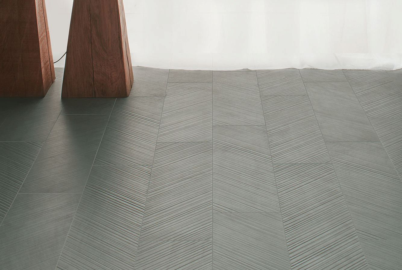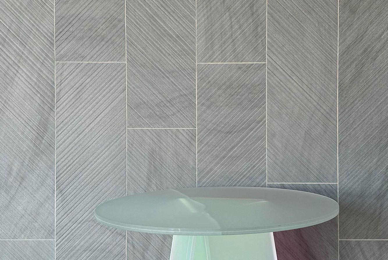 Несмотря на кажущуюся строгость камня, коллекция придает легкость и свет интерьерам, благодаря фактуре шеврона с легкой насечкой.