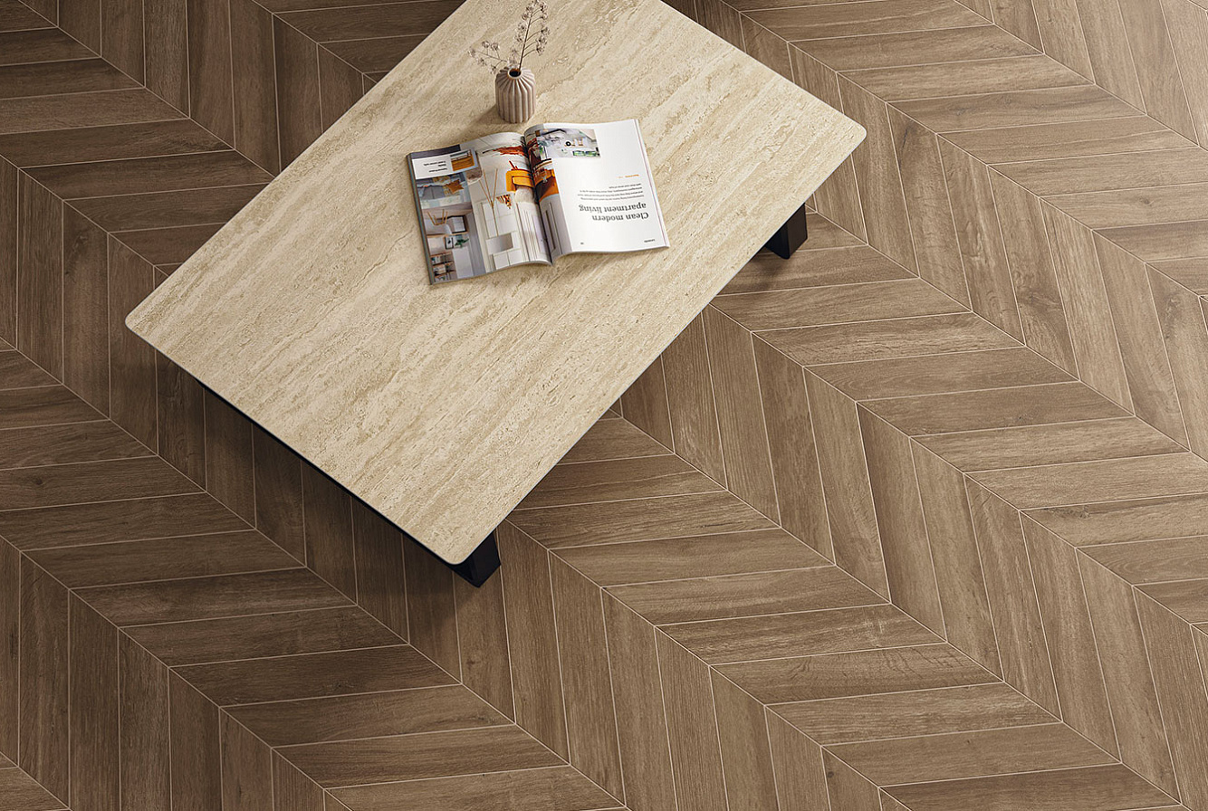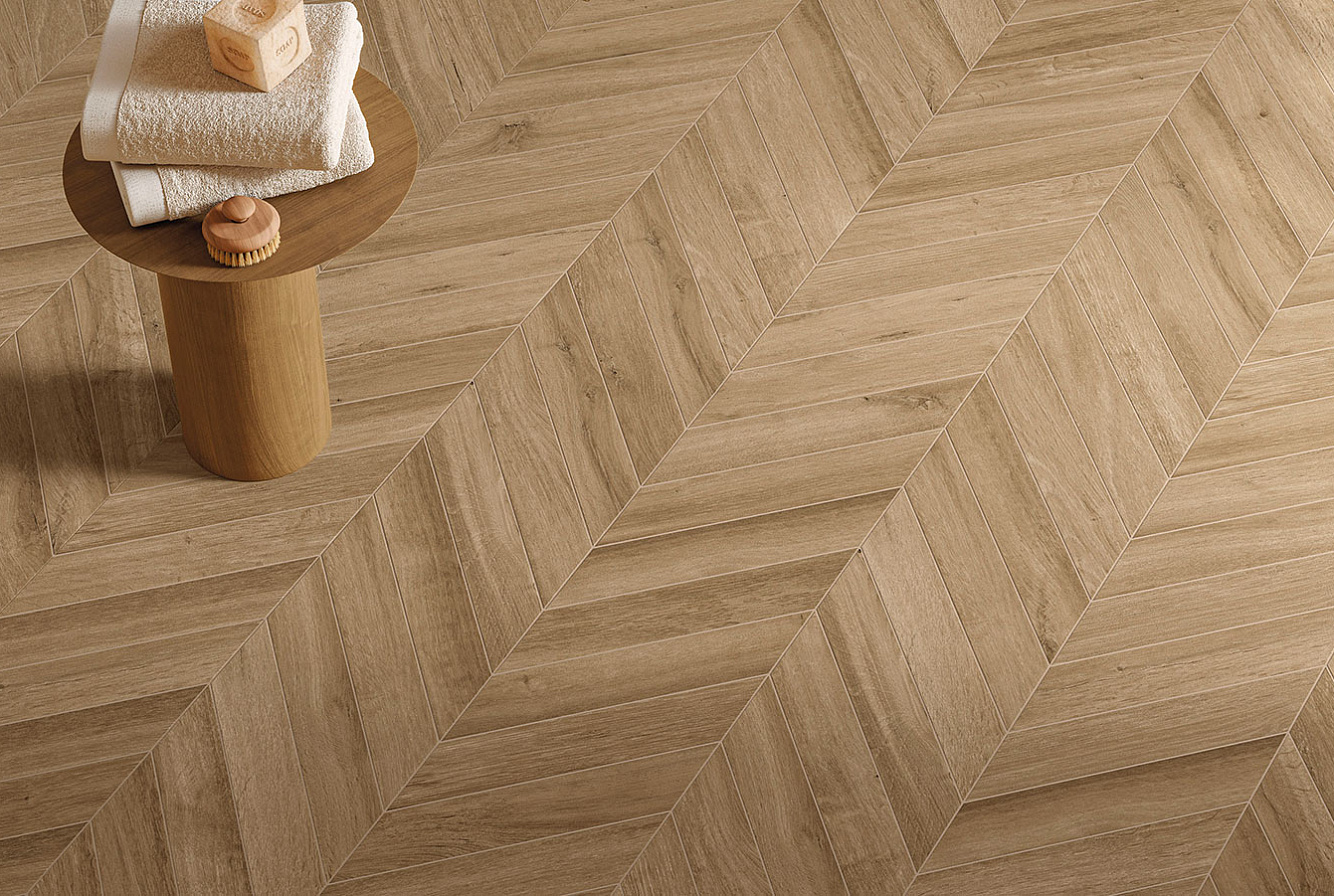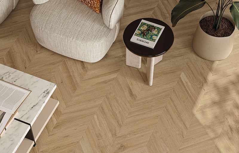 Серия представлена в двух форматах с матовой поверхностью: 20x120 см и Chevron 7,5x45 см для декоративной укладки "ёлочкой", которая придаёт поверхности дополнительную динамику и выразительность. Формат 20x120 см также доступен с противоскользящей поверхностью Grip.