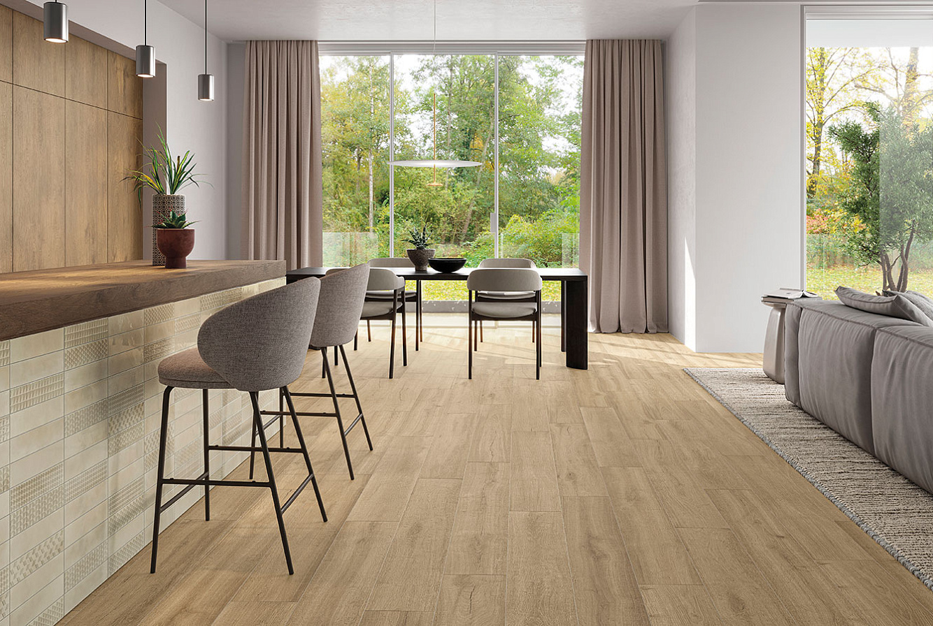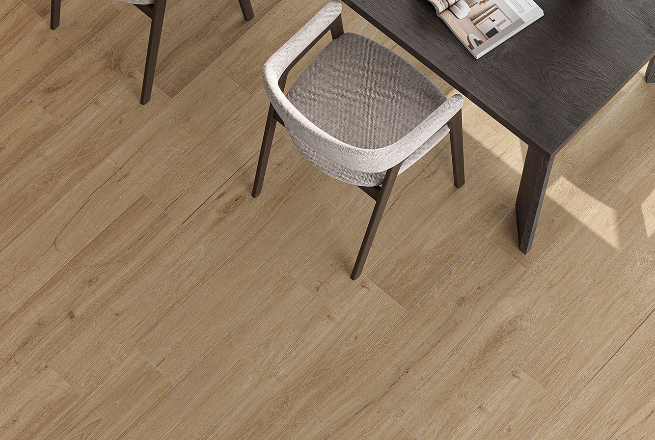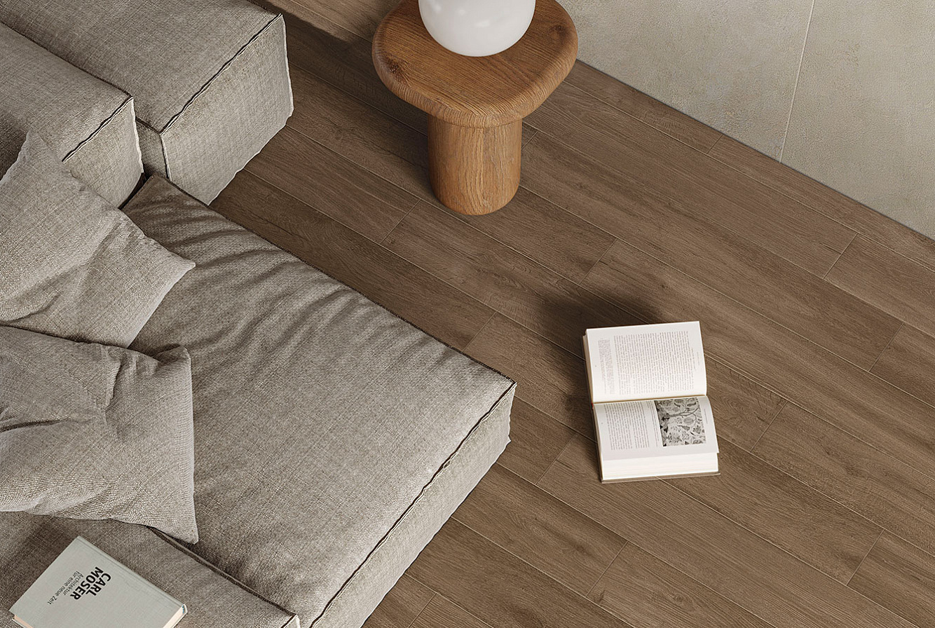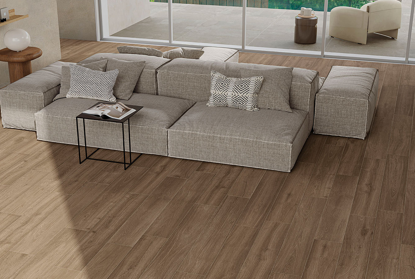 Коллекция керамогранита FUSION OAK / ФЬЮЖН ОАК раскрывает эстетику натурального дерева через благородную текстуру дуба. Современная пескоструйная обработка подчёркивает рельеф волокон и усиливает красоту оттенков, обеспечивая гармоничное единство цвета и текстуры.