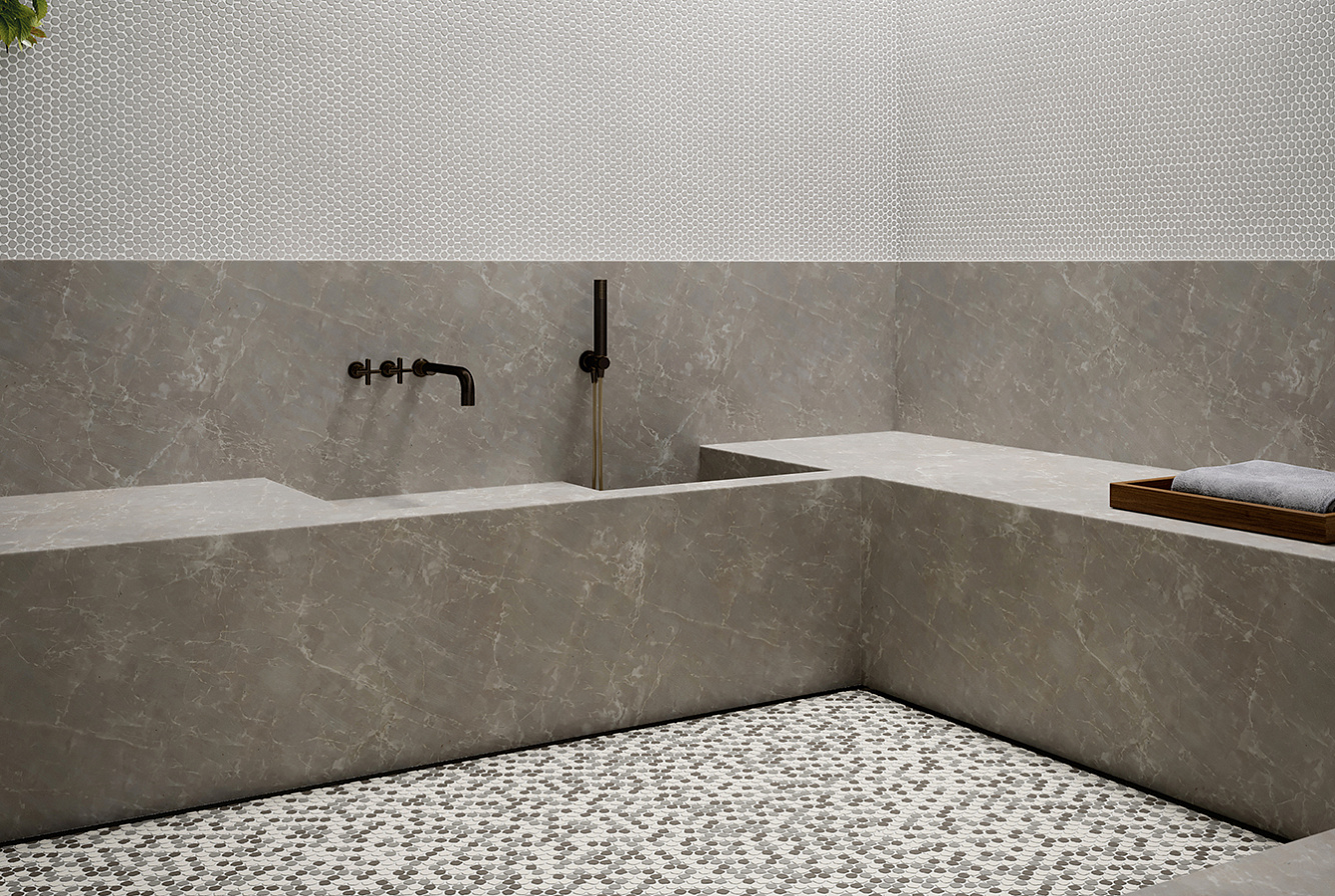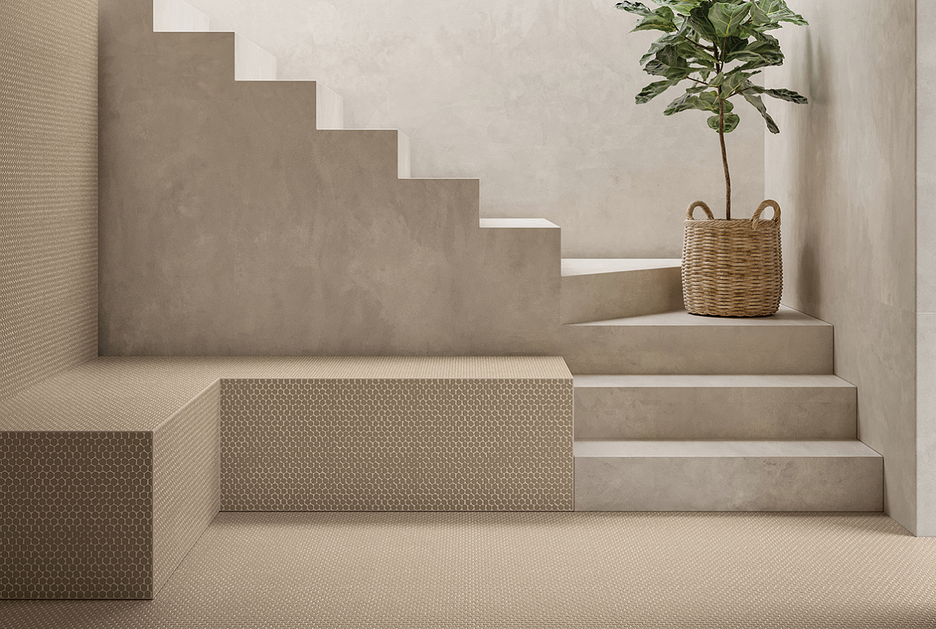 Керамогранит, окрашенный в массе, представлен в формате 30,5х30,5 см (толщина материала 5 мм) с матовой поверхностью, что придаёт ему особую тактильную привлекательность и визуальную глубину.