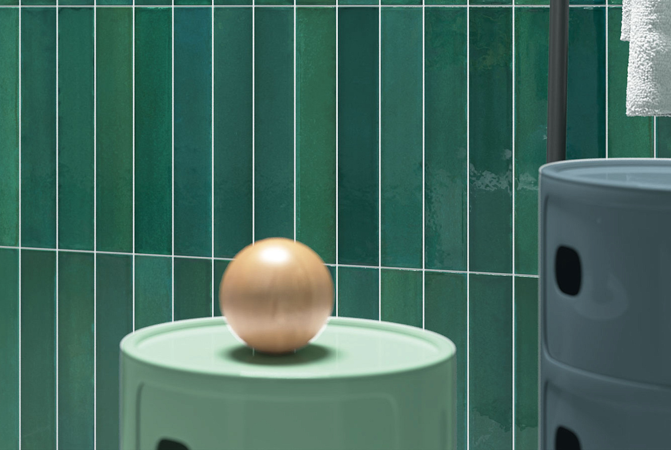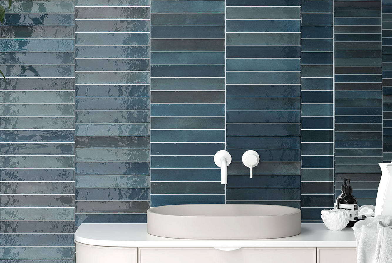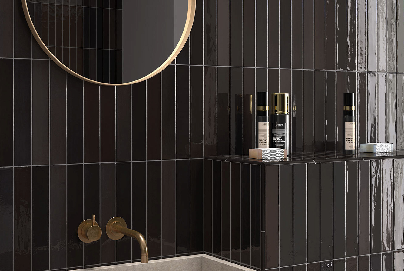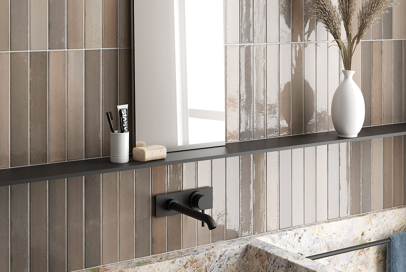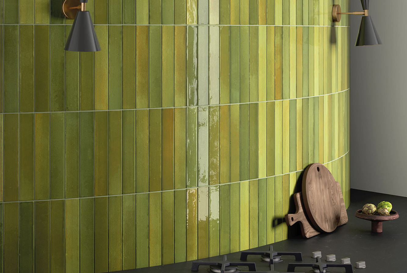 Серия выполнена в едином формате 5х30 см и доступна в восьми цветах с высокой тональной вариативностью в глянцевой отделке поверхности: Moon, Castle Rock, Golden Glow, Moss, Moka, Bluestone, Water Garden и Iron.
