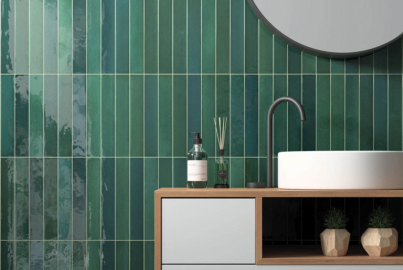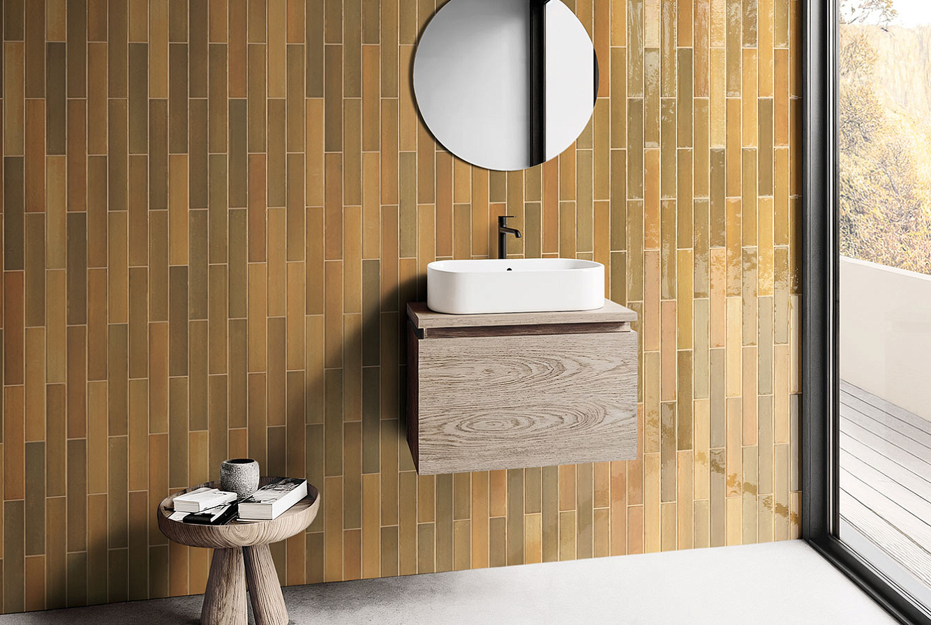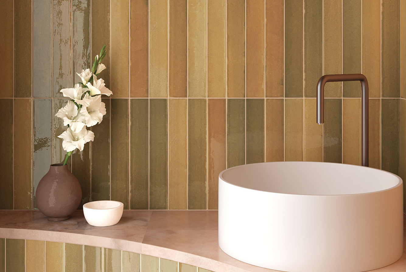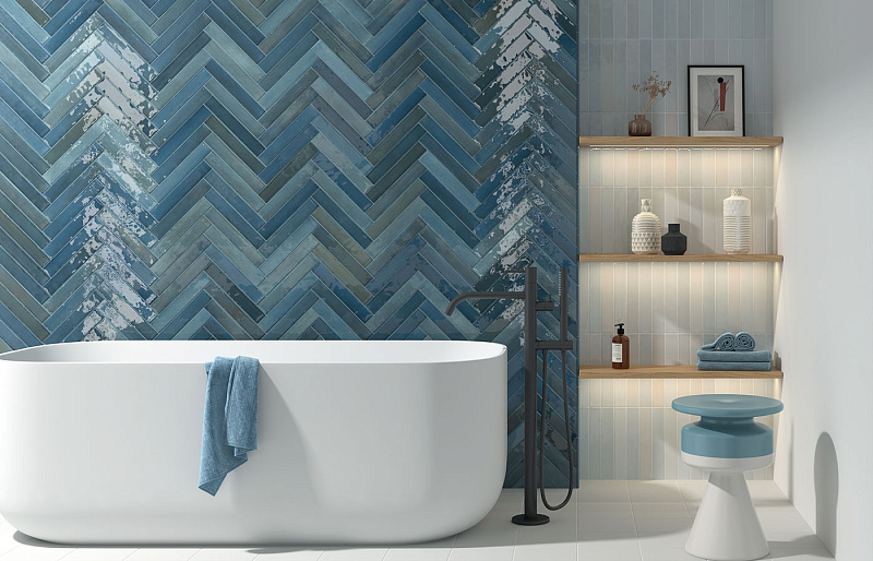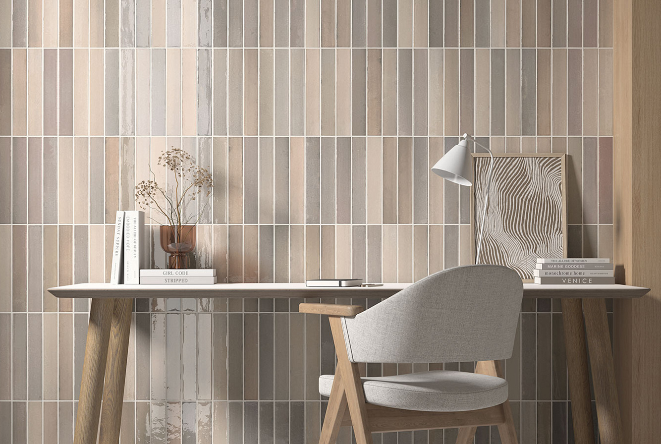 Серия выполнена в едином формате 5х30 см и доступна в восьми цветах с высокой тональной вариативностью в глянцевой отделке поверхности: Moon, Castle Rock, Golden Glow, Moss, Moka, Bluestone, Water Garden и Iron.