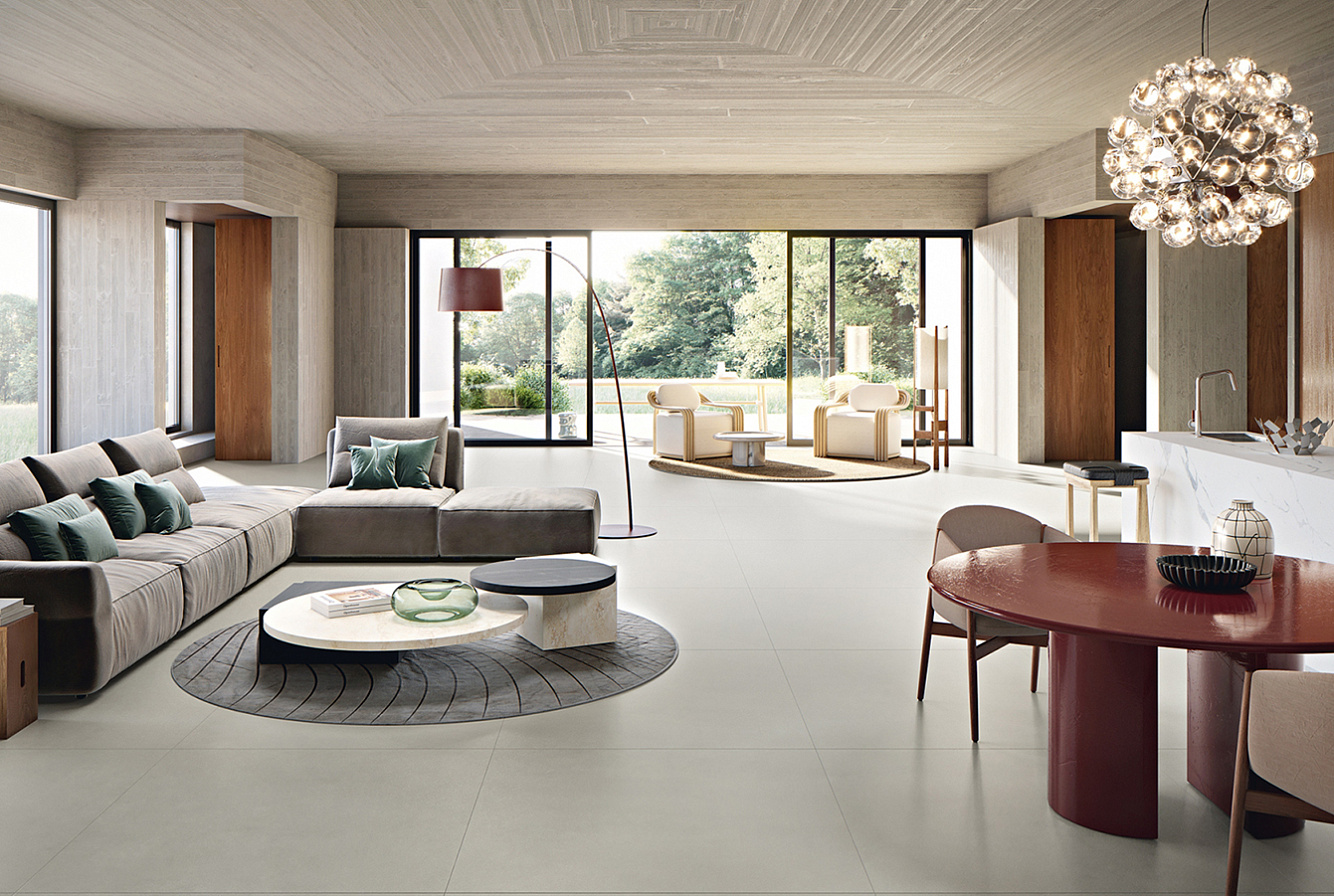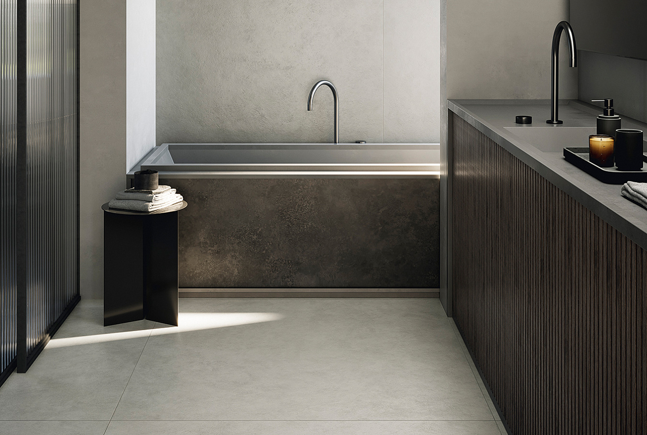 Вэйв имитирует бетон с плавными цветовыми переходами, добавляя пространству глубину и объём;