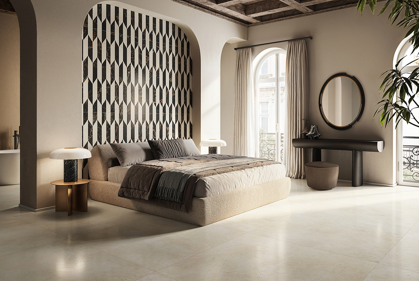 Malfi, напротив, переосмысливает Crema Marfil — камень, излучающий тёплый свет. Его бежевые тона хранят отголоски древних цивилизаций, привнося в интерьер сдержанную, но вечную элегантность.